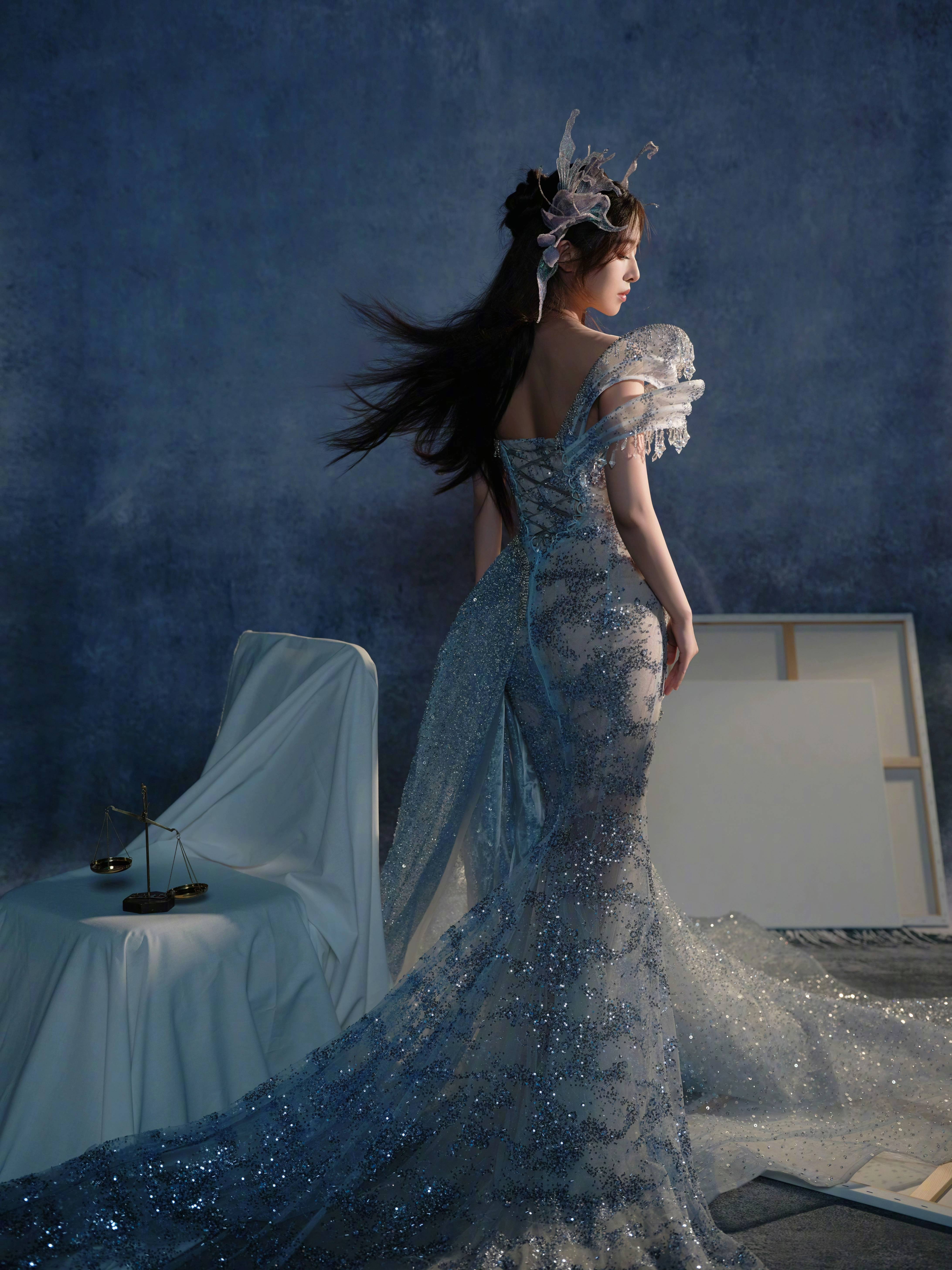 银蓝渐变星光礼服,是梦幻与艺术的时尚交响。